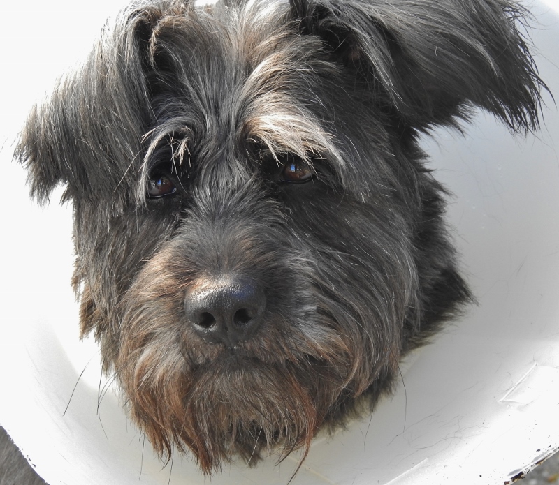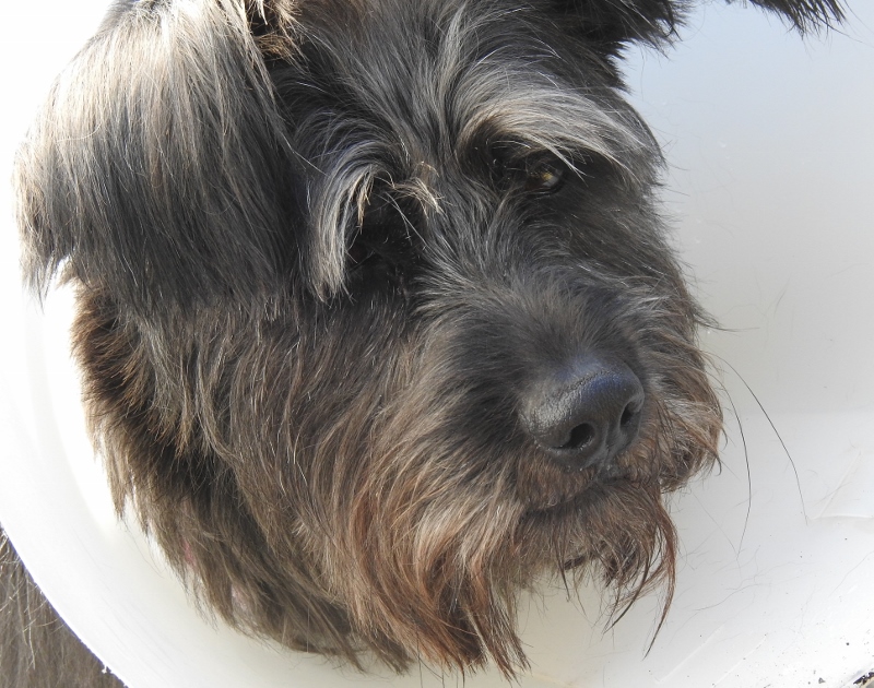 Macy belongs to a friend of mine, who was heading away for the city for a few days with some friends.  I moved in to look after her new dog Macy while she was gone.  Two days before they left, Macy had a problem with her anal glands and as a result, she was wearing this lovely cone for the time I was there.  The cone didn’t slow her down one little bit.  I think her only problem was that she couldn’t scratch her ears when they were itchy – so I looked after that for her.  🙂  Well, she also spilled some water when trying to drink out of her water bowl, but a towel under the bowl kept that under control.