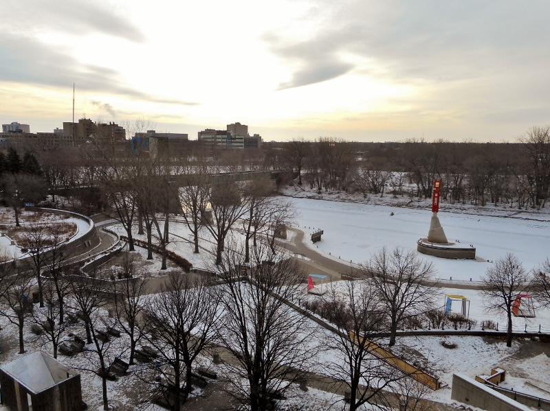 Winnipeg is often called Winterpeg for a reason. We can (and usually do) have very cold winters. This area is called The Forks because it is situated at the fork of the Red and the Assiniboine Rivers. These rivers freeze in the winter and we have skating rinks and walking trails on both of them. Since it is so cold, we have warming huts situated along the trails.