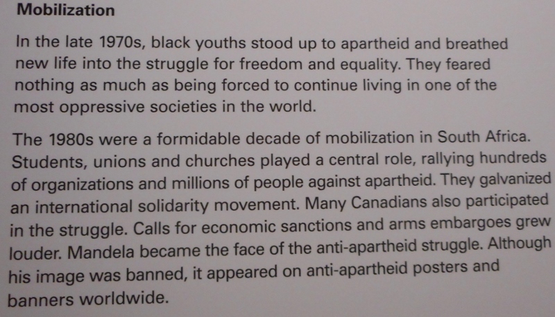 First stop (on the first floor) was the Nelson Mandela exhibit. There was a lot of information in this exhibit about his life and struggles and I took many photos, but won’t post all of them here. I learned much later on that the IPads scattered throughout all the exhibits were holding so much more information than what I was seeing.