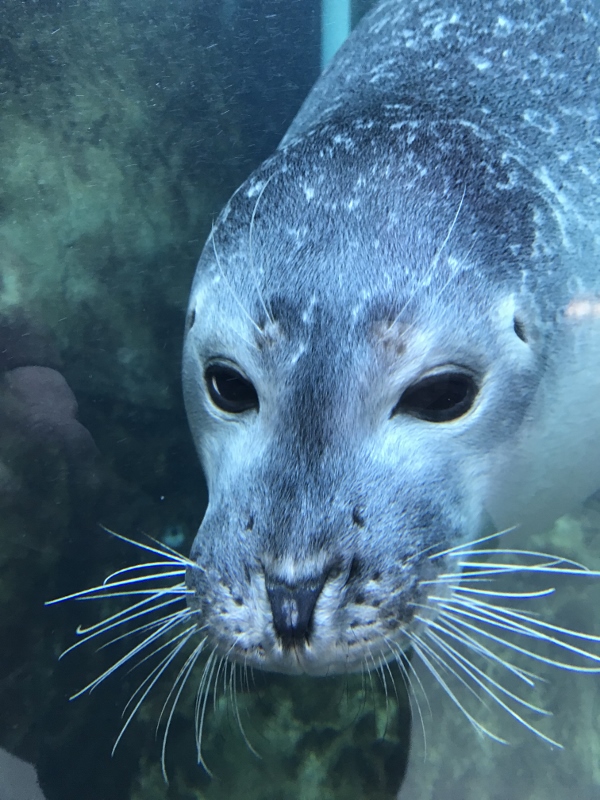 This is Emil. He is a Harbour Seal and lives at the Assiniboine Park Zoo. He is one of the few ones that are housed here that is not a rescue. Emil and his brother Anton came to us from a zoo in Germany, but the rest of the Harbour Seals were rescued in the Vancouver area and most have eye (or other) problems and would not survive if released back into the wild.