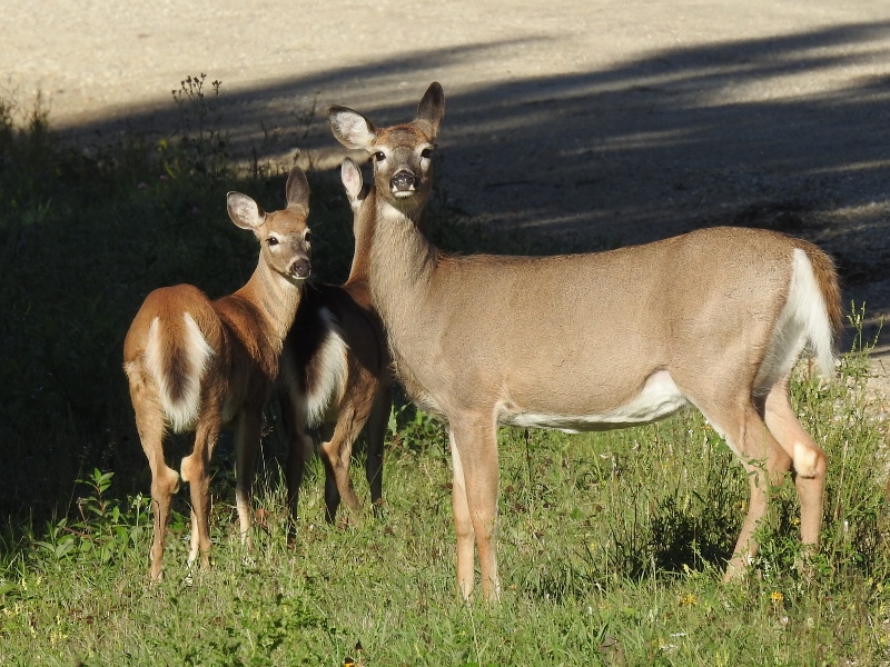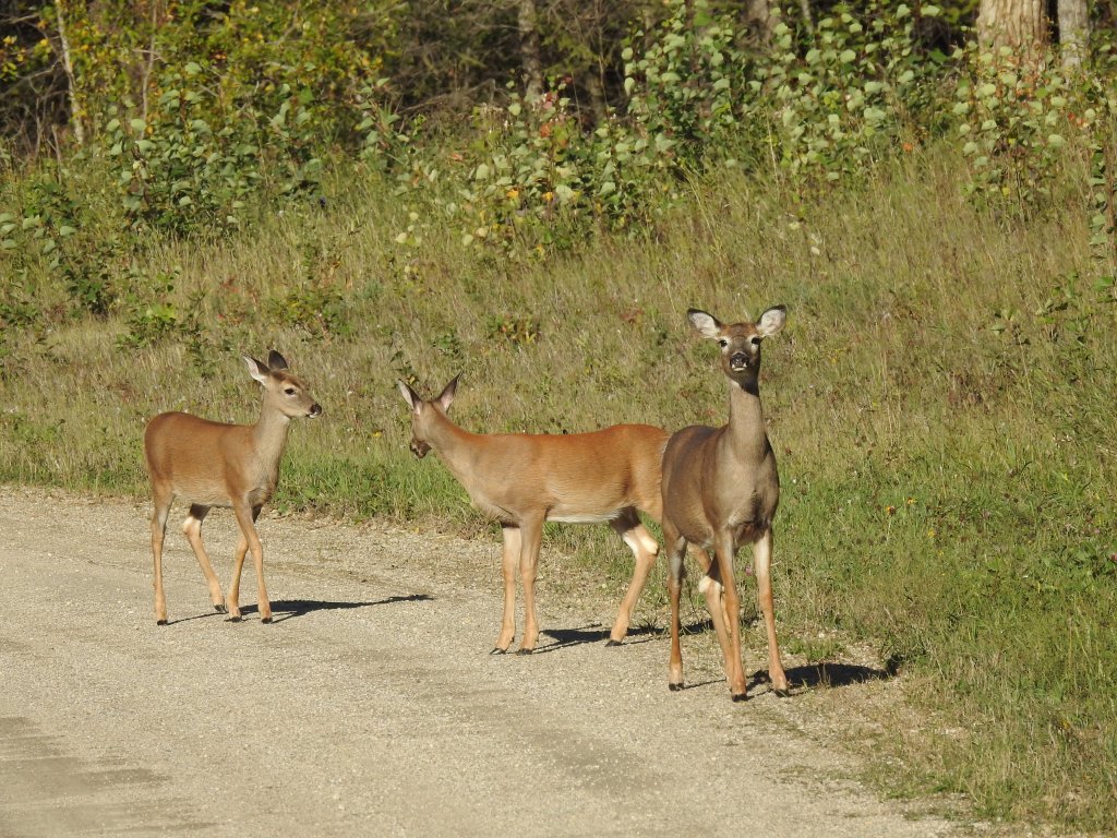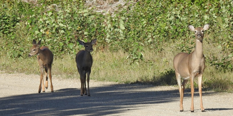 First sighting was a trio of beautiful White-tailed Deer – a mom and her 2 almost grown fawns. They were on a turn of the road ahead and I stopped to zoom in on them. They knew I was there, but because I was a good distance away, they were not disturbed by my presence – although they kept an eye on me – especially mom.