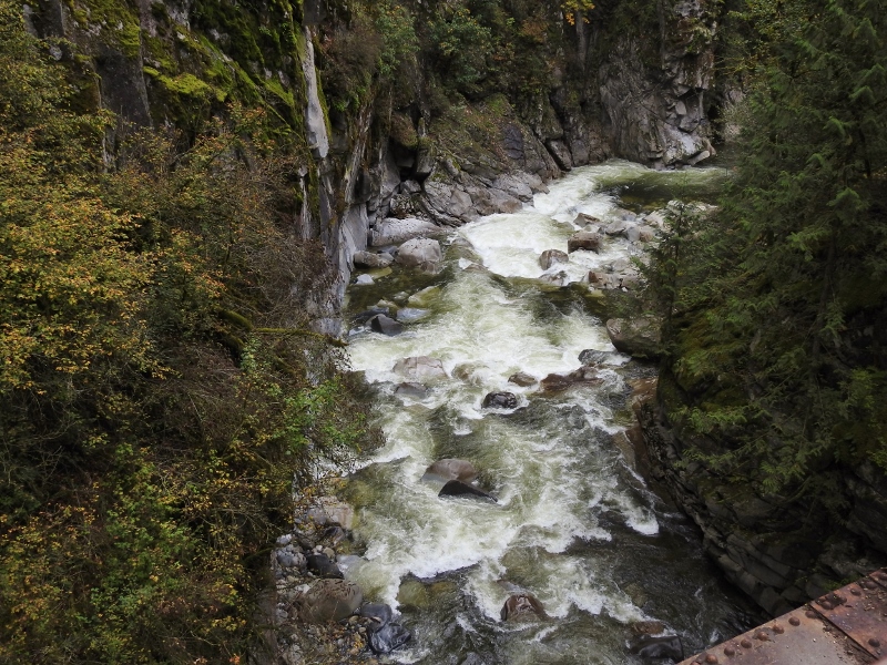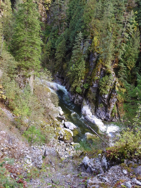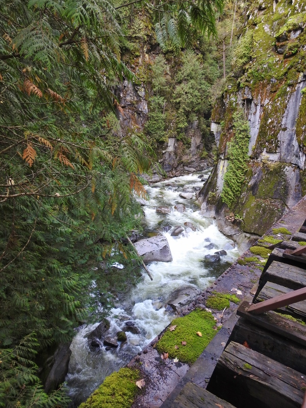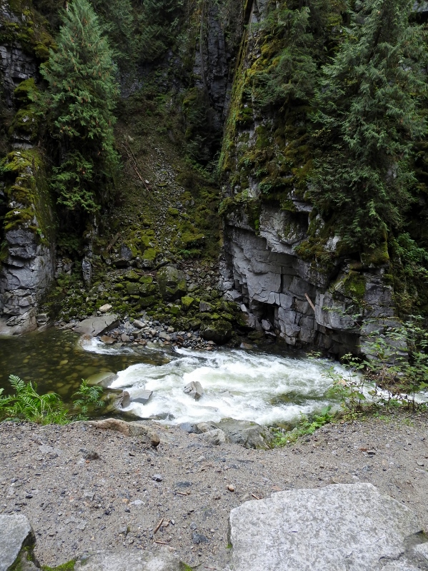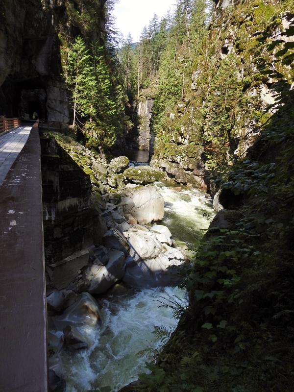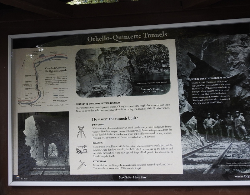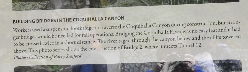 My daughter Angie has plans made for the days I will be here and everything sounds so great. Today’s excursion was out to Othello-Quintette Tunnels, which is in a Provincial Park. Here, the Coquihalla River has dug a deep canyon (Coquihalla Canyon) with its rushing waters. The tunnels go alongside the river and cross over it at times, since the river has many bends.