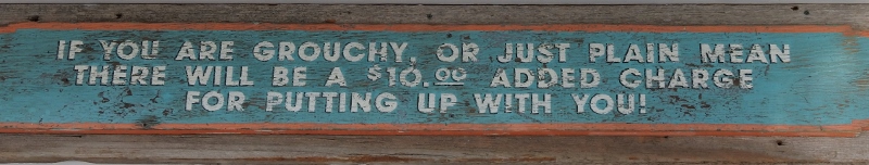 If you can’t read this for any reason – here is what it says. “If you are grouchy, or just plain mean – there will be a $10.00 added charge for putting up with you!