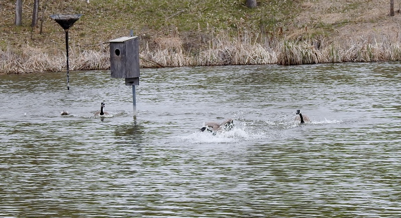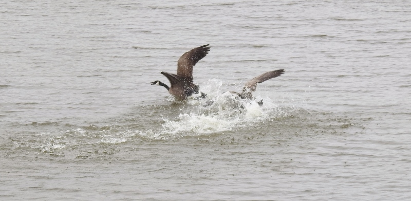 Then I was witness to a Canada Goose fight. There were 3 birds in the fight, so 2 would have been a pair (probably mating) and one lone Canada Goose.