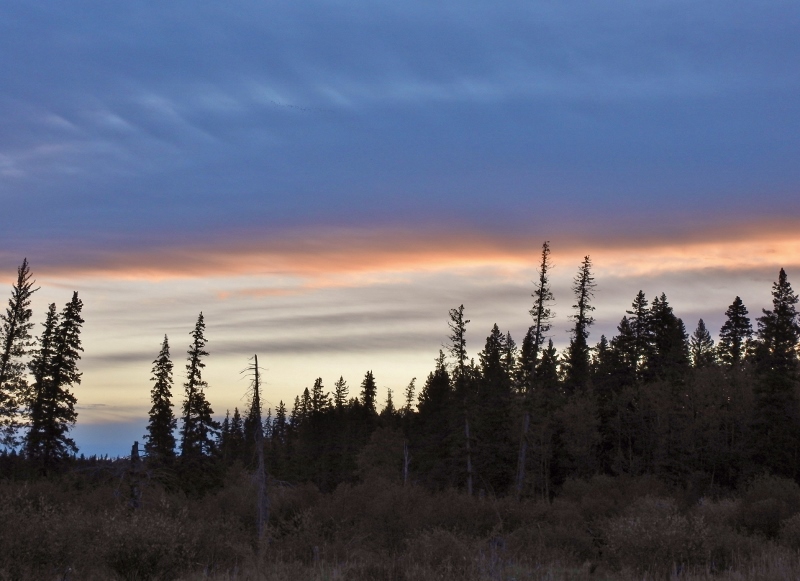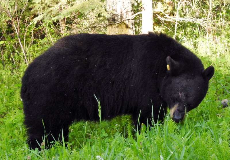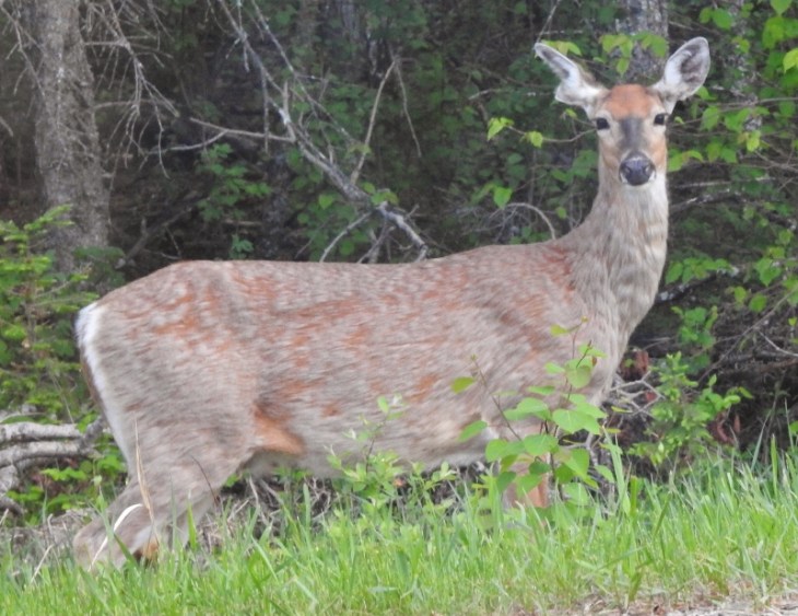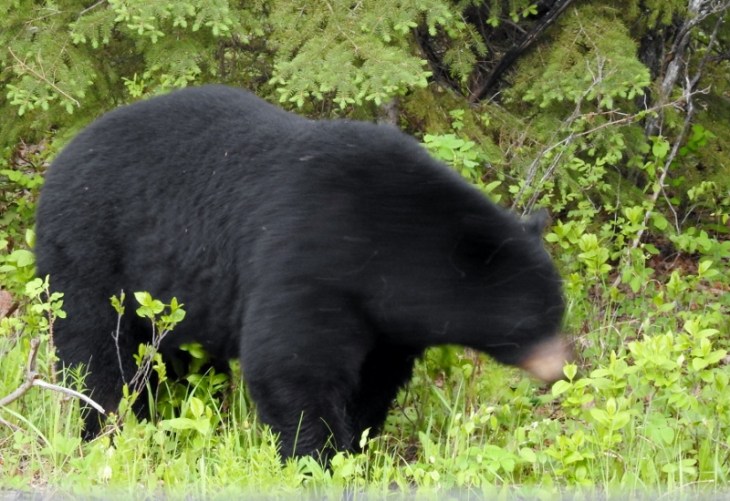 It was a little dark where I found my first Black Bear for the day. He is a little blurry, but I had to include him. Then I came to a spot where there was a Moose and a White-tail Deer. They both started running, with the deer ahead of the Moose (you can see the deer’s tail at the far right of the bottom photo). But then the deer stopped to pose for a photo, while the Moose disappeared into the bush.
