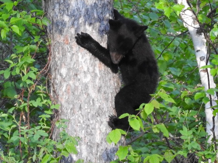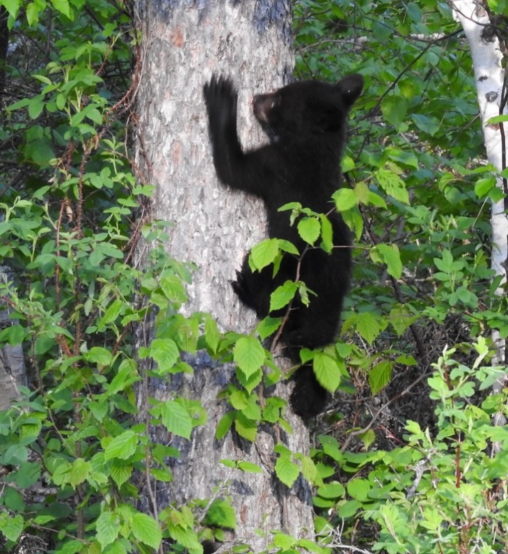Next a Black Bear and her 2 little cubs. The little guys stayed hidden most of the time, but finally one climbed high enough in a tree that I could see him. The other one didn’t cooperate, but in the last photo, you can see them both if you really look.
