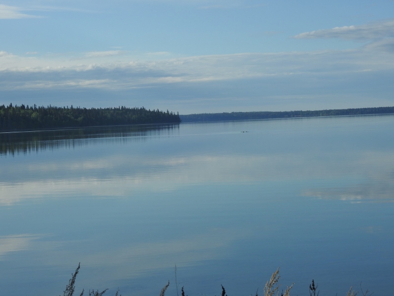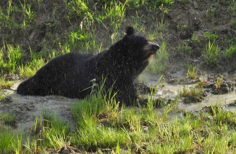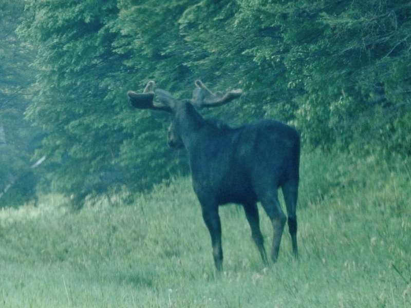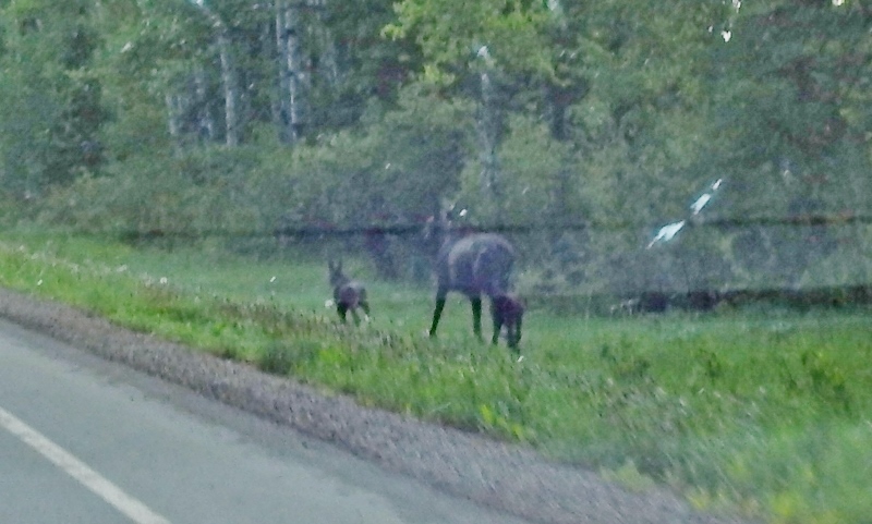 I brightened this photo up a bit. It was taken through my dirty windshield and cropped – but there is a Moose with twins, so I have to show it, even though not a great photo.