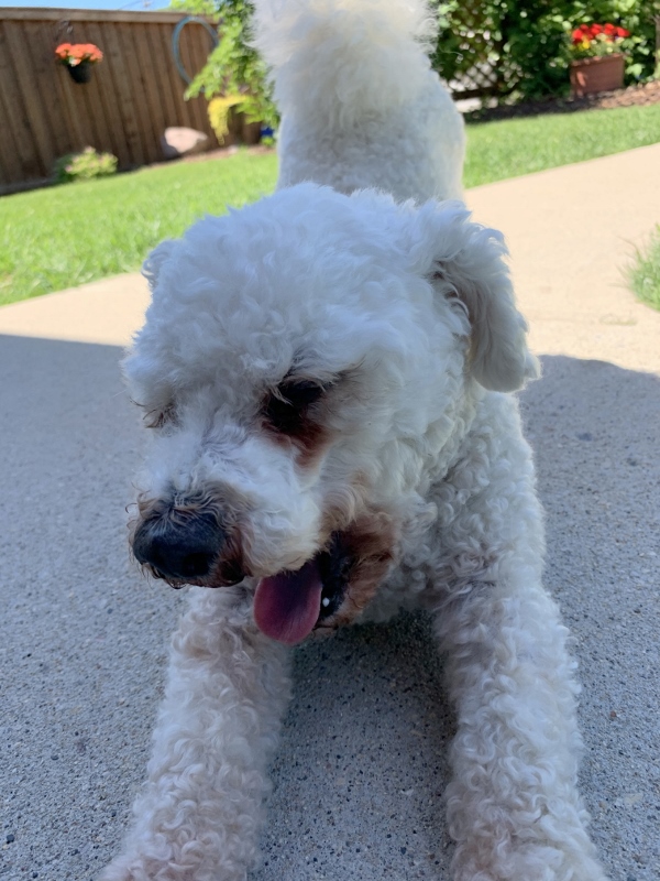 It was fairly warm by that time, so we went for a short walk – just around the block. I’m sure I’ve mentioned before that he has to pee on every tree, every fire hydrant, every weed that is taller than the surrounding grass, every corner fence post – and so on. He is so entertaining! Male dogs normally pee about 1/2 of what is in their bladder, so each time they stop, the amount goes down. By his 10th (or so) stop, his bladder only has a fraction of a drop left, so there is virtually nothing coming out – but he still has to try! that means that it takes awhile to go all the way around the block, but that isn’t a problem. I’m never in a hurry and he is so cute!