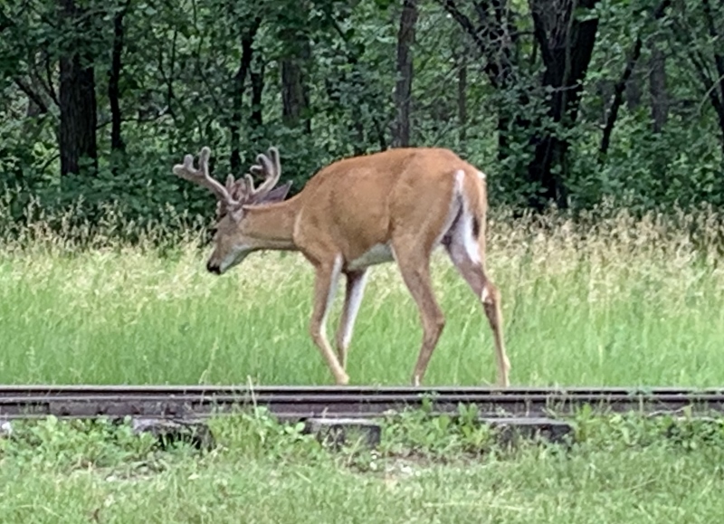 These 2 White-tail Deer were in Assiniboine Park. The train tracks are for the cute little train that rides around some of the park.