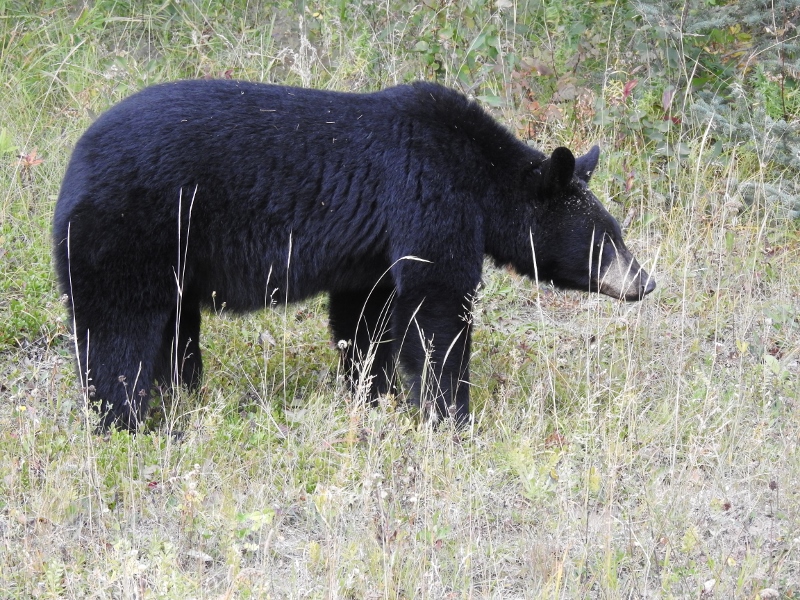 At dinnertime, I was invited to have a bowl of an amazing home made soup. I’m going to have to start making soup – this was delicious. Anne also offered to take me for a drive in the park to see if we could find some critters starting to move around just before dark. We found one Black Bear eating near to the road and later found a Black Bear with 3 little cubs. We only got a quick glimpse of them and I managed 1 photo of a small cub looking our way.