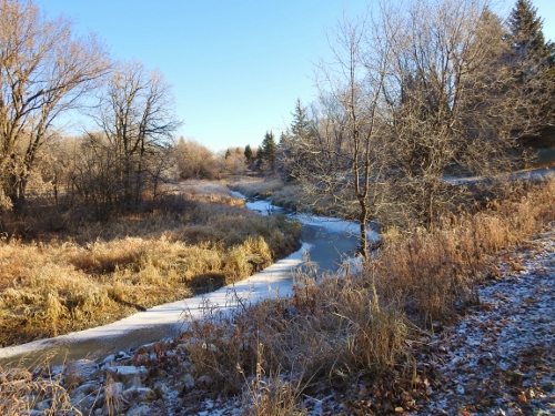 For the last couple of years, I’ve been hearing about Cardinals being seen around the Bunn’s Creek trails. Before that I had never heard of Cardinals being anywhere in Canada except Southern Ontario. This year on a Facebook page, I have seen plenty of photos of these beautiful birds taken at Bunn’s Creek in Winnipeg – so this morning I googled mapped it and headed there. It turns out I lived very close to there about 50 years ago – in my first apartment.