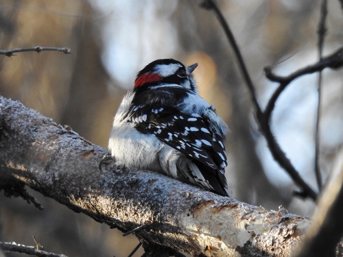 A Downy Woodpecker was very busy hammering a tree, so I managed a photo when he stopped for a second.