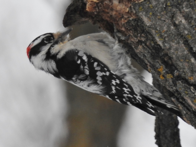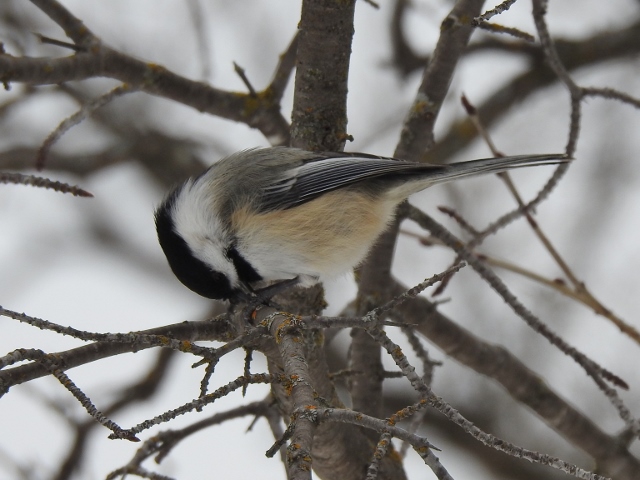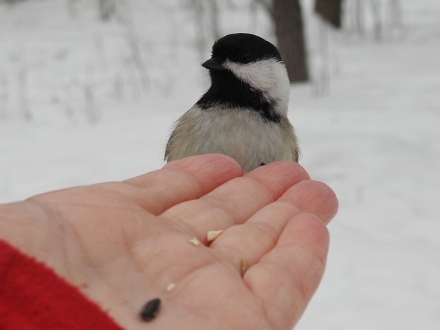 Peek-a-boo with a Chickadee – I think he is waiting for more seed selection – but he was out of luck. π¦