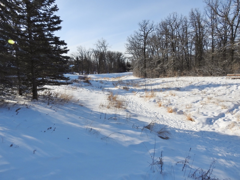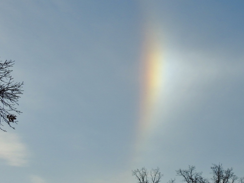 The temperature was a balmy -19C with a windchill feeling like -30C, so I bundled up and headed for my walk under the bright blue sky with beautiful sun dogs. For those of you who do not get chilly days like this – a sun dog is the sun with 2 crescent shaped rainbows on each side of it. This only shows up on very cold days.