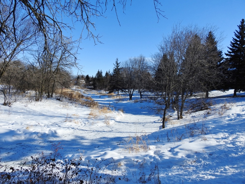 We are just emerging from some extreme cold warning weather, that had temperatures in the -40C range with wind chill temperatures in the -50C range. I haven’t been outside much until I headed out this morning for a walk at Bunn’s Creek. I am still determined to find a Cardinal and/or the Owl that hangs around there. The temperature was -18C with the windchill of -28C and it is warming up a bit each day (they say) for a couple of weeks.