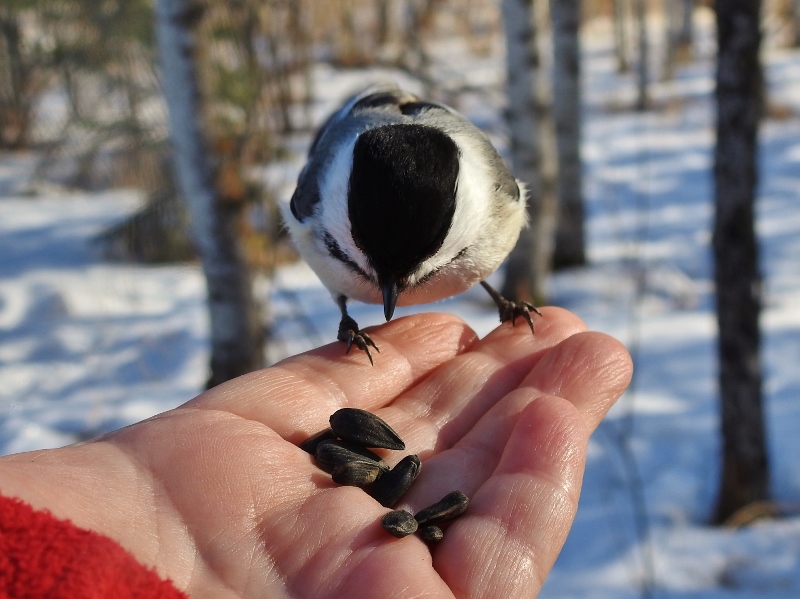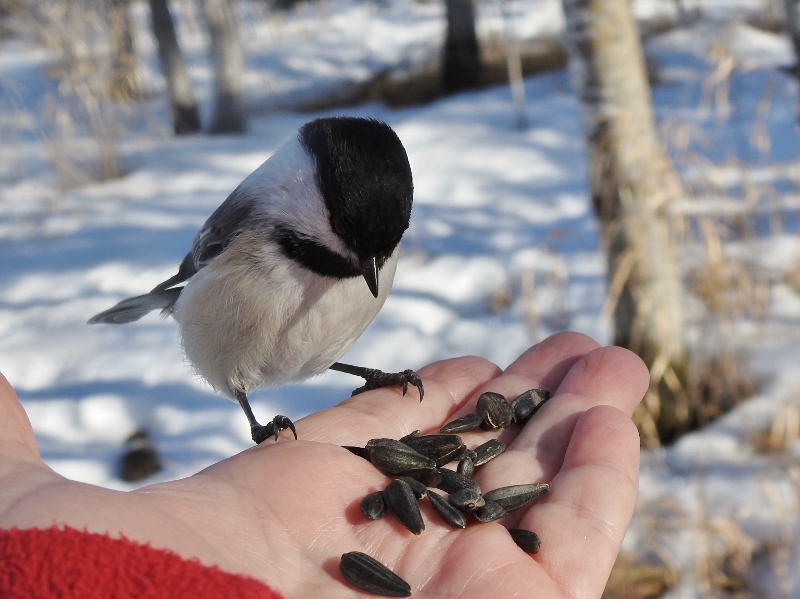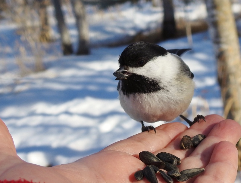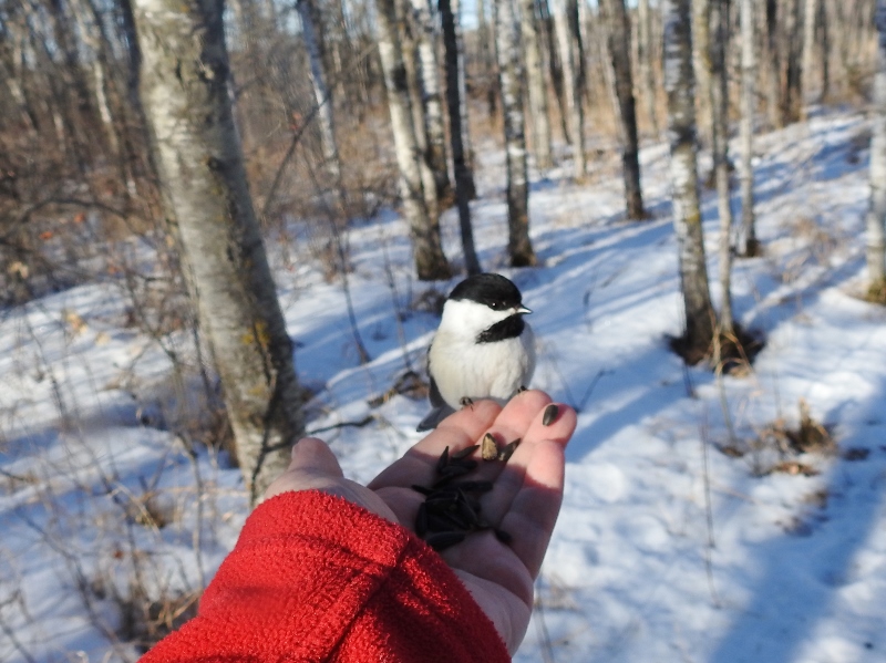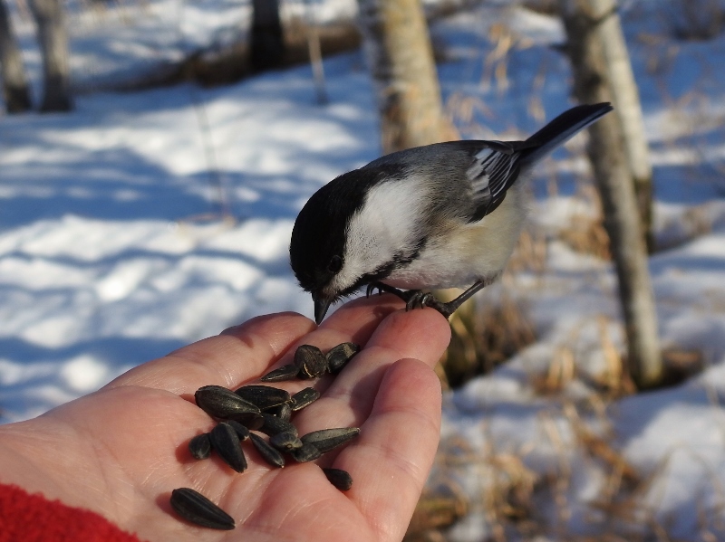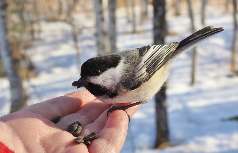 I found a few Chickadees and since I remembered to bring some seeds with me this morning, I was able to convince them to make a few quick visits with me.