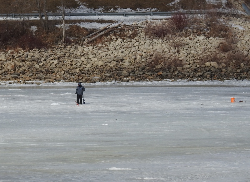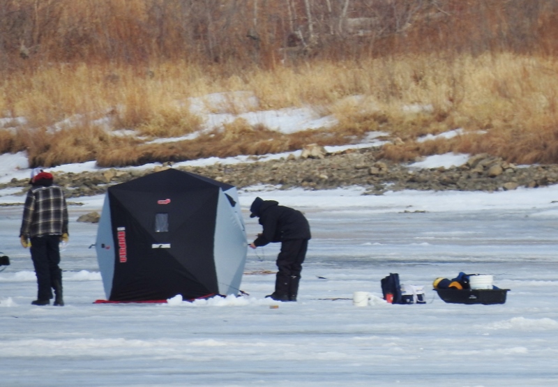 As I walked along the river, I noticed more people out on the ice. I thought the huts were supposed to be off the river, but maybe not around here. I notice they didn’t drive their vehicles onto the ice anyway.
