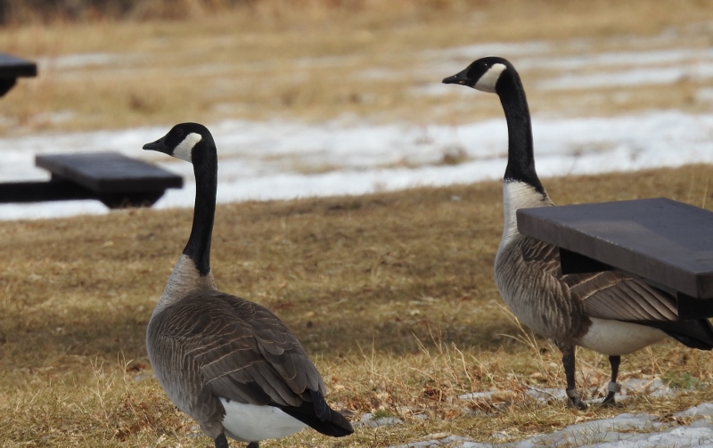 A pair of Canada Geese were hanging around the picnic tables and complained a bit as I headed their way.