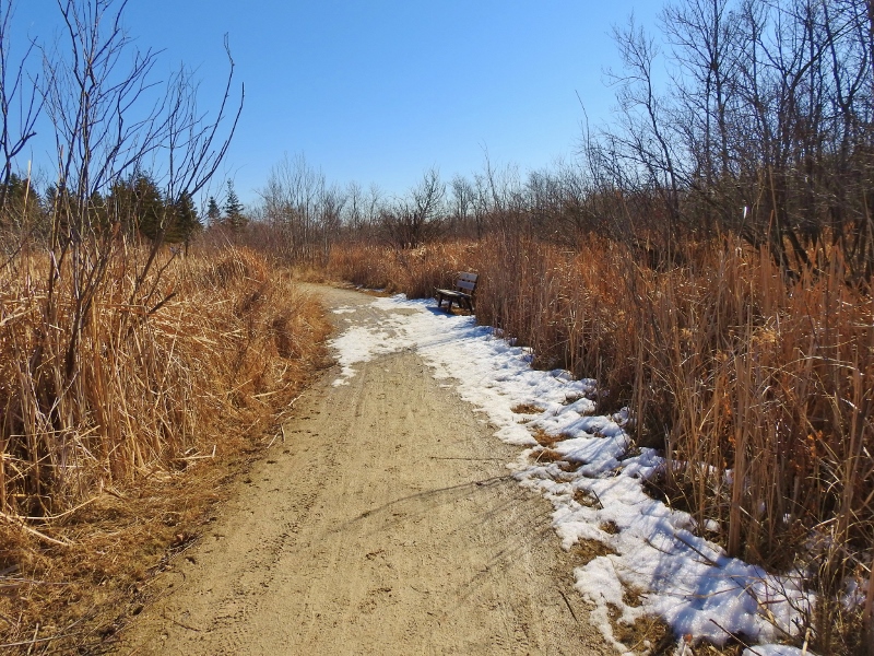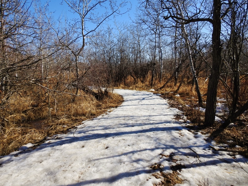 This morning I decided to head over to Fort Whyte Alive for my walk. I phoned ahead to find out if the paths were still icy and they advised me that some spots were, but much has melted. I decided to put my spikes on just to be careful.