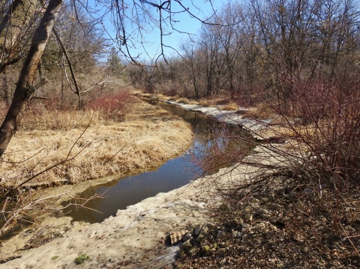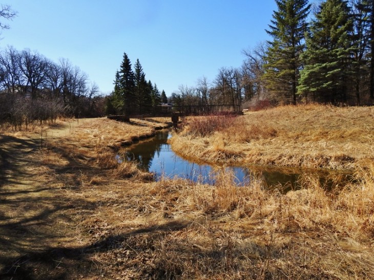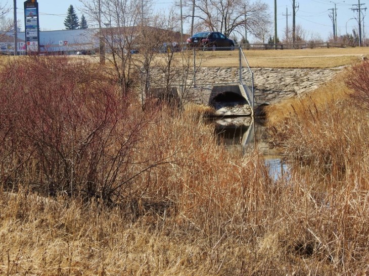 1. The culvert continues and pops up and down a couple of times between Gateway and Raleigh…and then “into” the large retention pond on the other side of the stores seen in the photo(actually the reverse since the pond drains into the creek!). It then continues all the way from Kilcona Park!! Most(all?) of it is man made to provide drainage from Kilcona and the Chief Peguis Retention Pond to the Red River. Ancient history: the waste water from the Cordite Plant in Transcona from World War 2 used to drain eventually into Bunns too. And Cordite Ditch still runs along Cordite Road way far into Transcona…and that all runs into Bunns too!I can’t post a copy of the map where I highlighted the drainage system, but google an address near Bunn’s park, and greatly enlarge the map and you should be able to trace the whole drainage system. This is a big reason why the city is concerned when the beavers in Bunn’s build up the dam so much that the creek backs up…and makes the whole area sensitive to flash flooding. Side note: have you ever been near Bunn’s in spring when there is a risk of the Red River flooding……I have seen parts of Bonner Avenue completely flooded from the creek…real scary since I only live a few blocks from the creek. Sorry if this is way too much information and maybe a bit of urban legend!