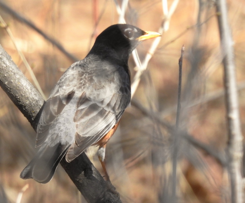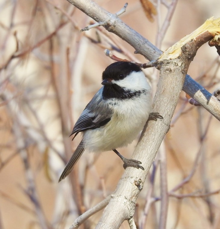 On my walk around the park, I finally found a Chickadee willing to pose for a photo – along with a Red Squirrel and a Robin. Of course, I thanked each one for allowing a photo.
