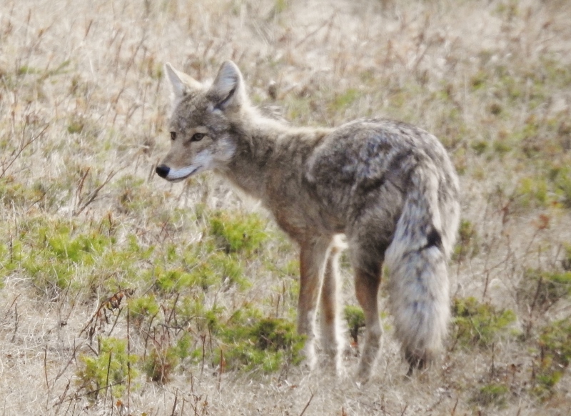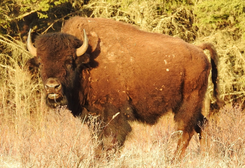 On my way towards the Bison enclosure I found – not 1, but 2 Coyotes. The first one was very shy and my only photo of him or her was behind the bushes. The second one ha no problem posing for photos. I took several, but will only show a couple of them. They were very close but out of sight to each other, so I don’t know if they were together or not.