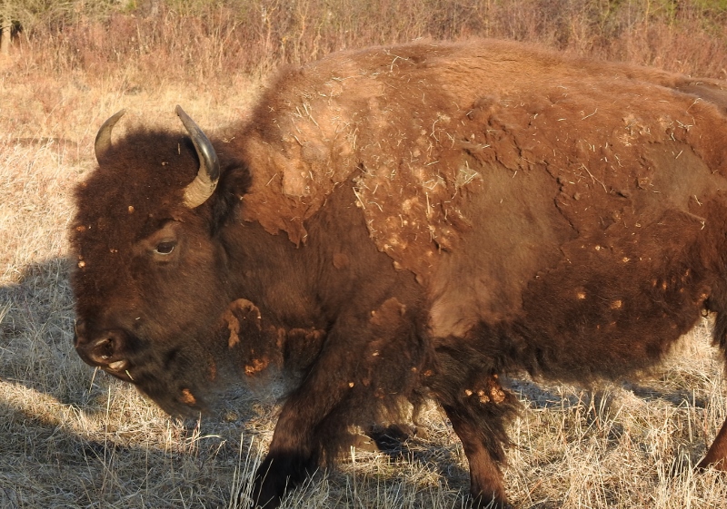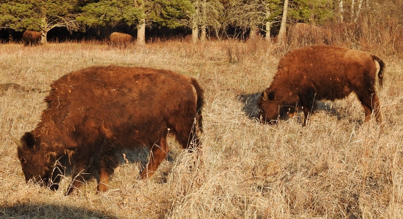 Before I knew it, I was inside the Bison enclosure and looking for them. I did find them in the back pasture and they were quite co-operative in posing for photos.