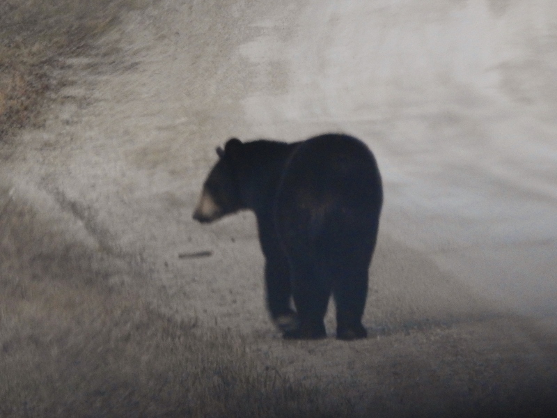 Not far from the enclosure, I found another Black Bear wandering on the road. It was getting dark and I took this through the windshield, but you can tell it is a bear.