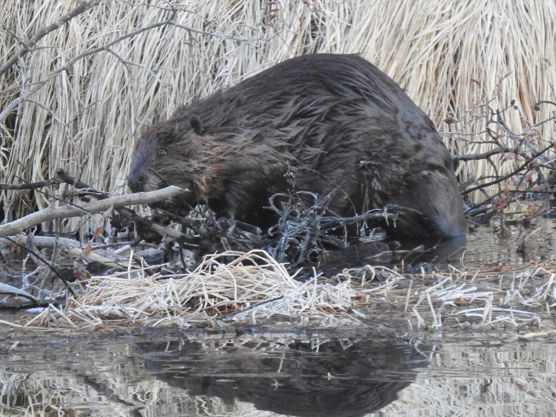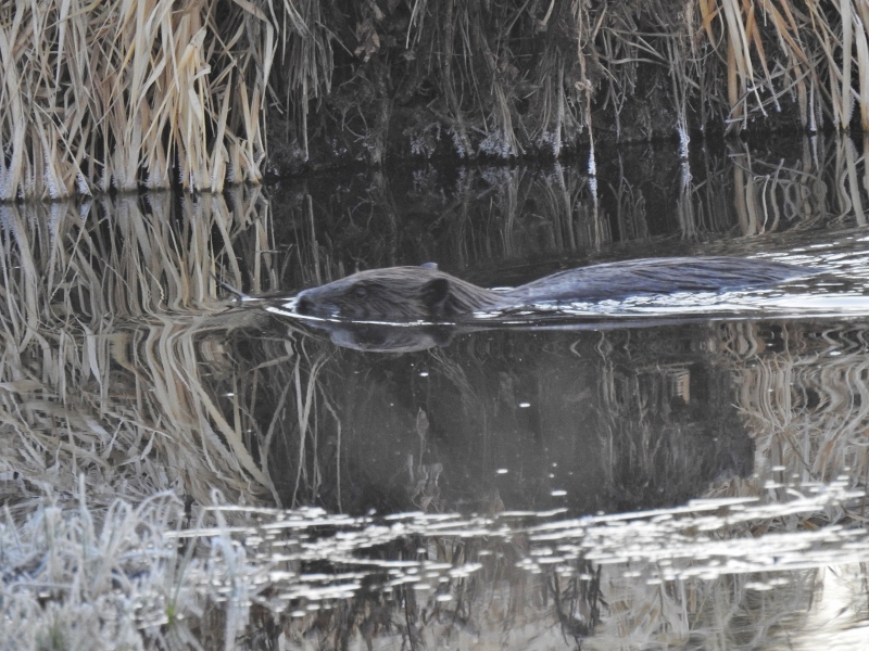 Of course, I stopped at the bridges on the road and was lucky enough to find this Beaver going about morning duties.
