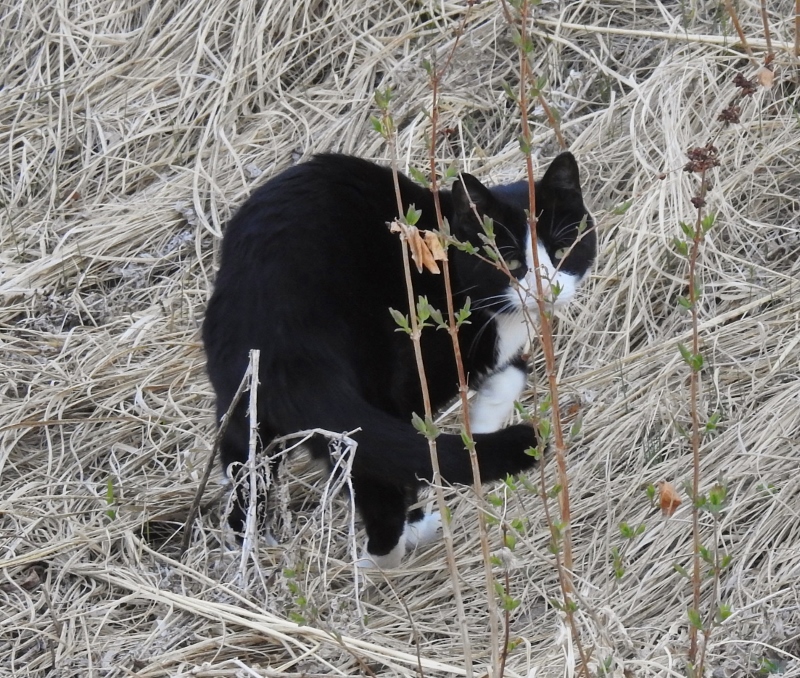 Anyway, I talked to the cat and took his photo and that distracted him from hunting for the moment. He came up to me and I pet him and then he wandered off.