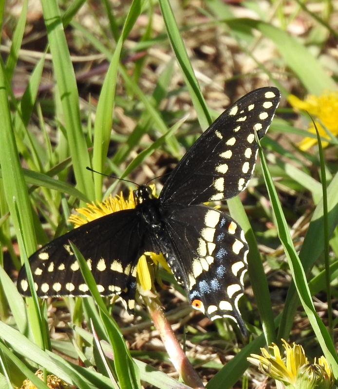 Instead of continuing that trail, when I reached the lookout, I headed out to meet up to the trail that leads to and old homestead on another trail. On the way, I found a Black Swallowtail Butterfly and a Clay-colored Sparrow.