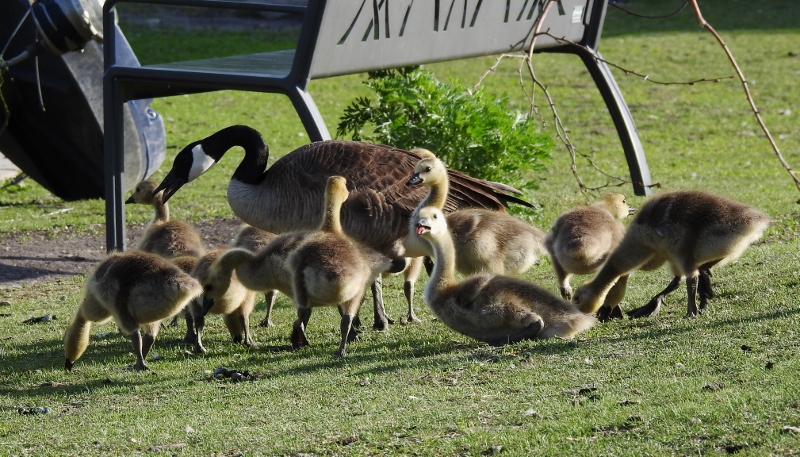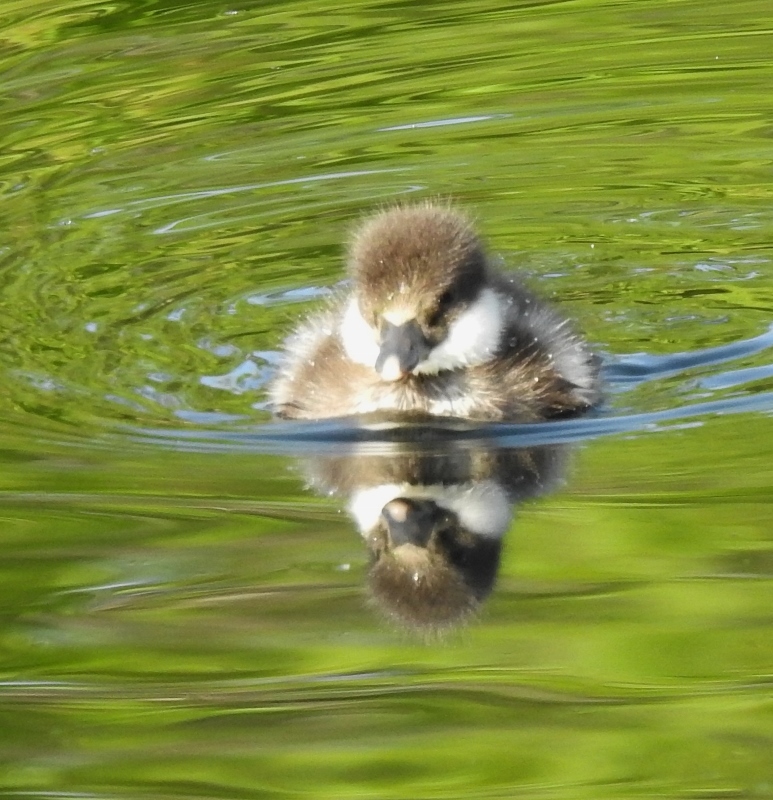 A Canada Goose family was in front of me and I noticed how large the Goslings are now. One of the Goslings even hissed at me. The parents were ok with me, but the youngster must have had too many photographers approaching. They were followed by a Goldeneye Duck family with adorable ducklings.