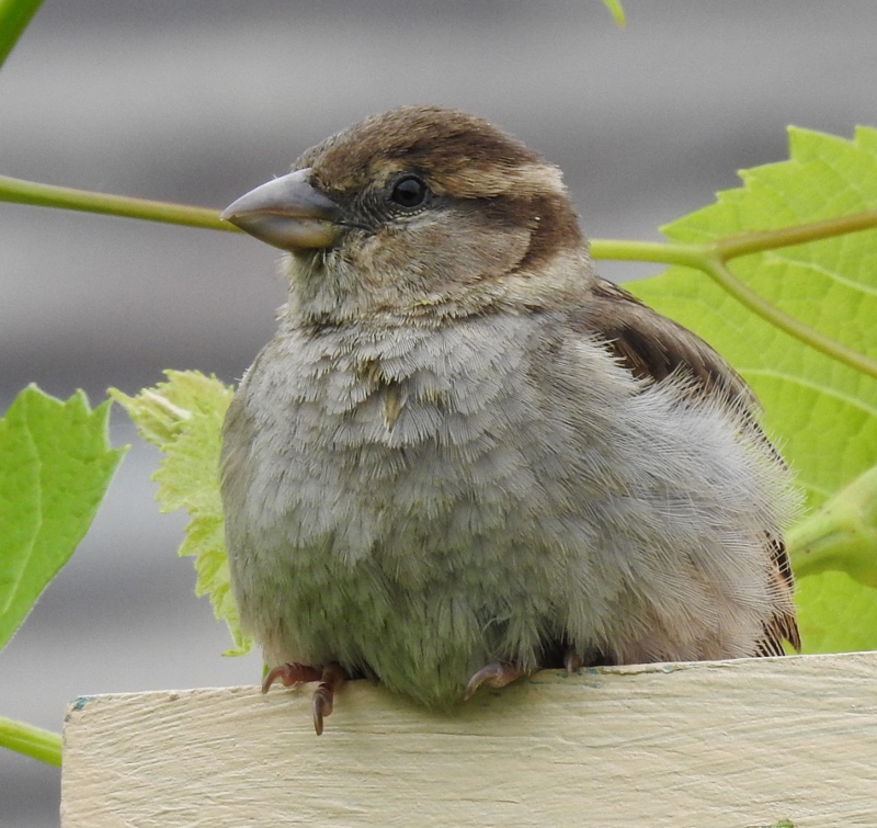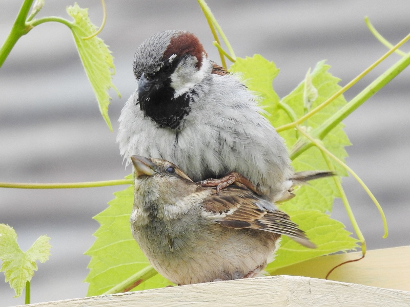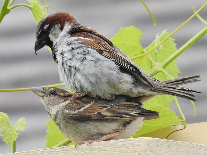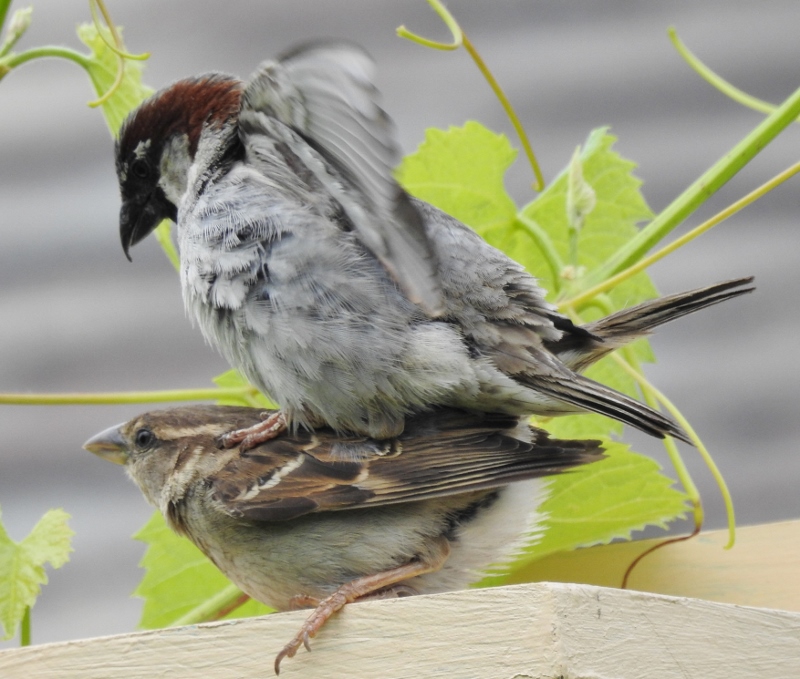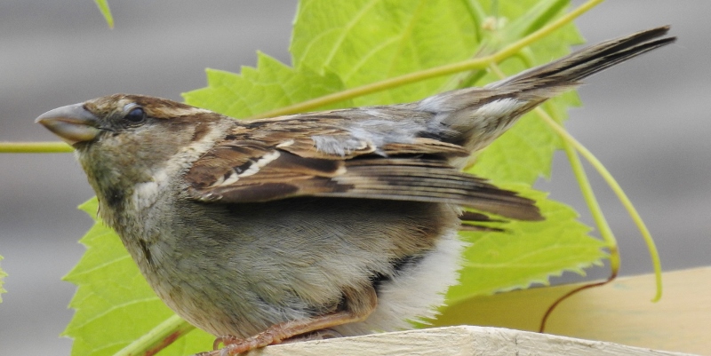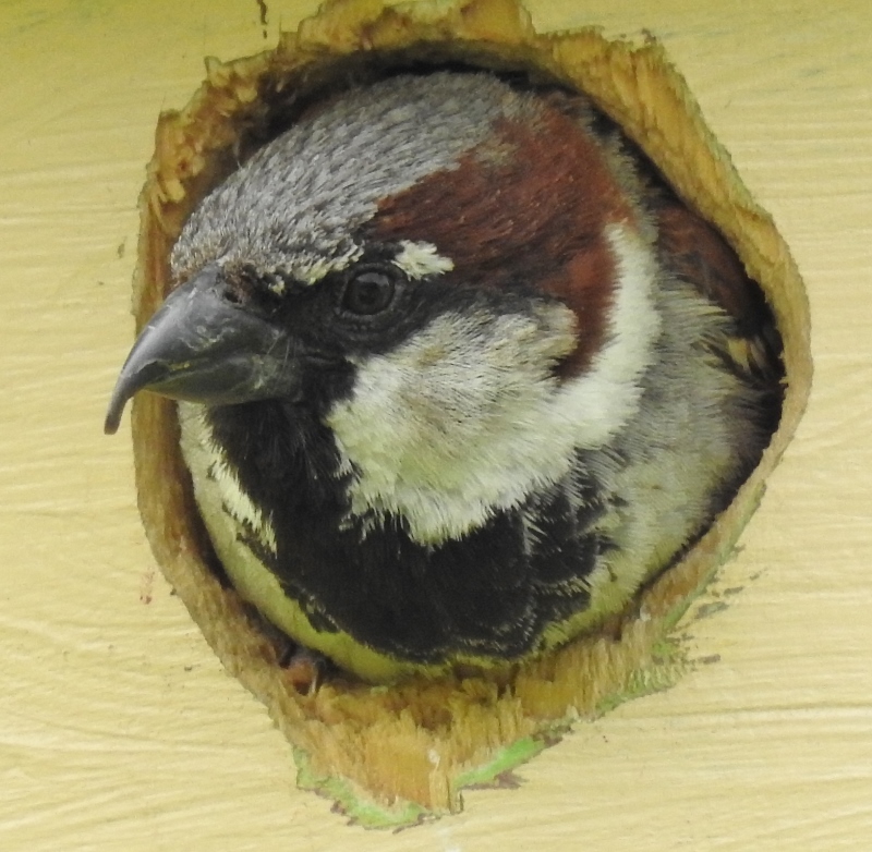 The House Sparrows are still building their nest inside a bird house. They were not shy about their preparations for a new family.