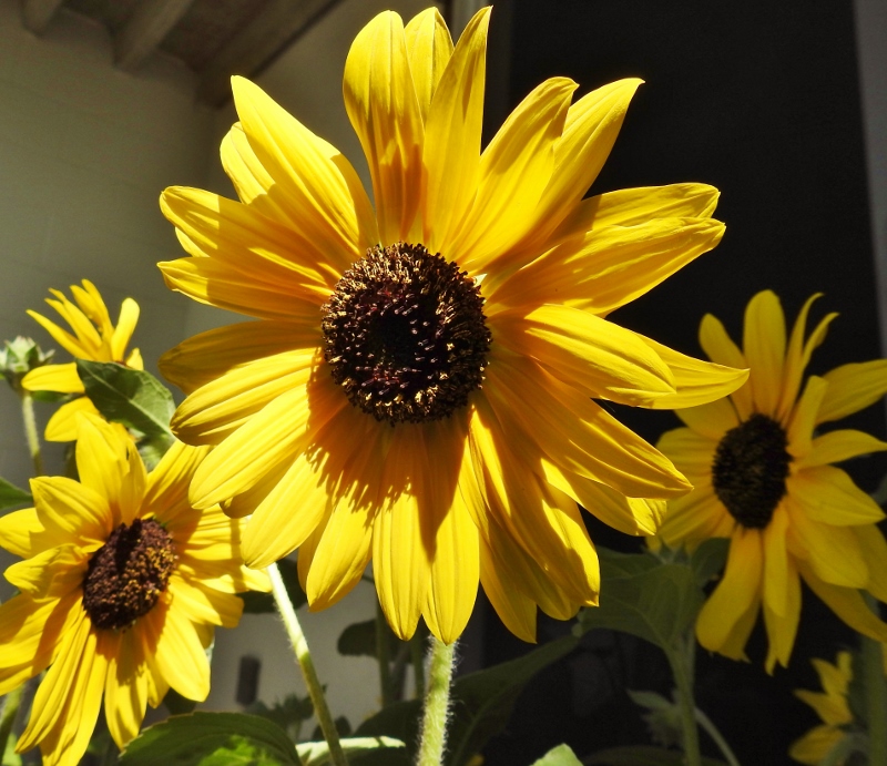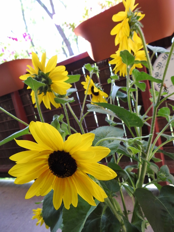 I don’t get a lot of sun on my balcony, so I hope they will be fine out there. Actually, just as I was getting ready to post this, I noticed that the sun has now reached my new sunflowers, so I grabbed a couple more photos.