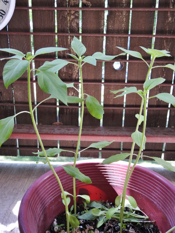 This new Sunflower sure put my sunflowers from seed to shame. But, I didn’t really plant those sunflowers. I swept my balcony floor one day and deposited what I swept up in one of my planters (which had nothing planted at the time). When they started growing and I wanted to plant my Impatience in there, I moved a bunch of the seedlings into their own pot. This morning I thinned them out so that just the sturdiest were left.