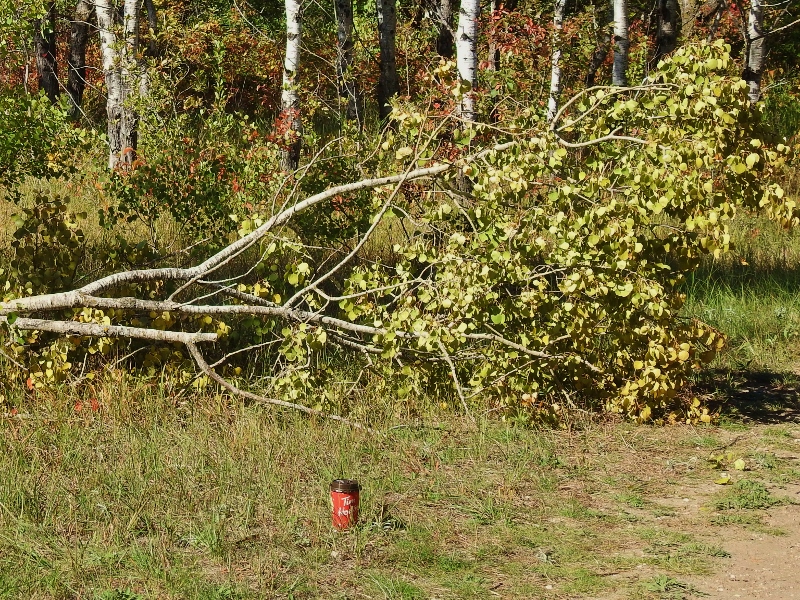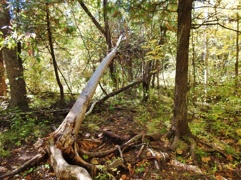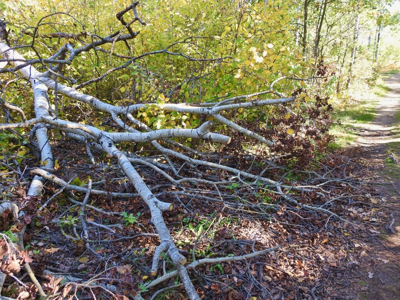 Glad someone sawed some branches off this dead tree or it would have blocked the path.