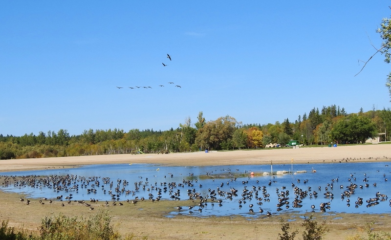 Back to the beach side – are any of these geese swimming?