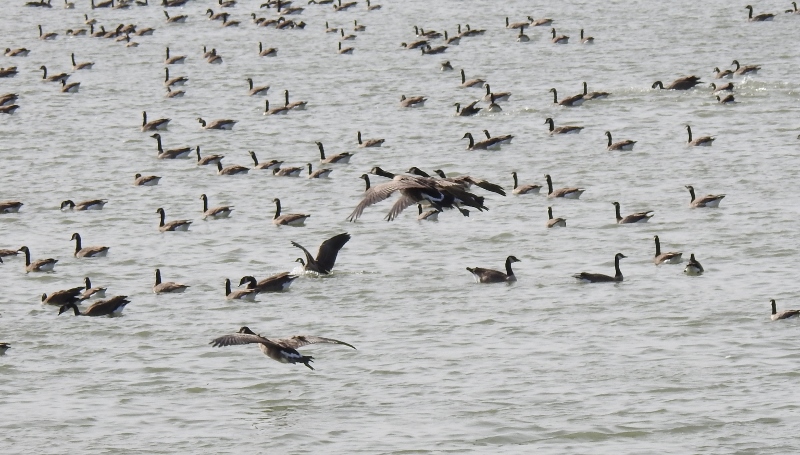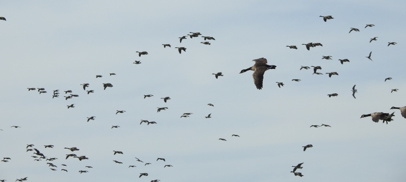 On the way back out to the city streets, I saw hundreds (or thousands) of Canada Geese arriving, so stopped for more photos.