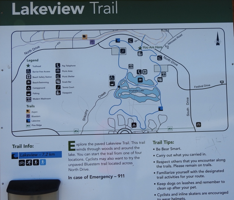 I wasn’t sure where I wanted to go after walking the Chickadee trail, but as I approached the overlook parking lot, I turned in. It has been awhile since I stopped there. This time I actually looked at the map and realized that the lakes and marsh (where I got lost last year) are directly across from the outlook and are not far. The paved trail there goes to the lakes and circles back. It is a 7.2 km walk, so I wasn’t going to do that today, but it is on the list for my next walk.