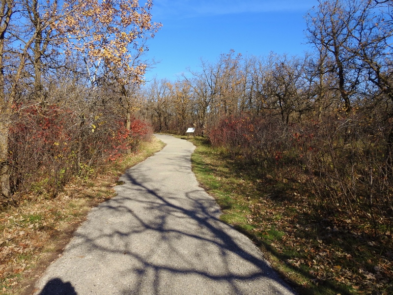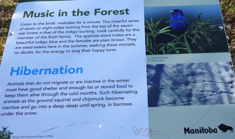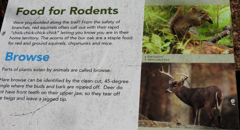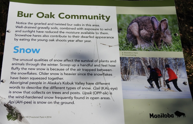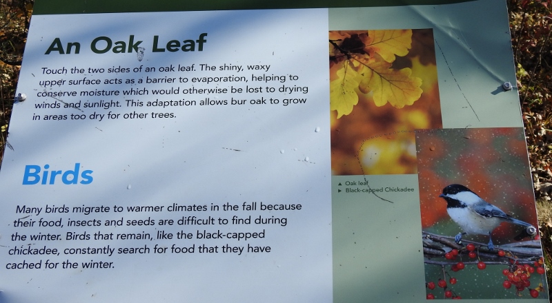 After I left the lookout, I noticed a sign for the Bur Oak Trail. I have never driven into there and had no idea how long this trail was, so I drove in to find out. I had no idea what to expect, but it turned out to be a very easy 1 km level trail – and it was paved. I didn’t see any wildlife, but there were quite a few information signs along the way. Of course, I took photos of the signs, so we know what we missed seeing.