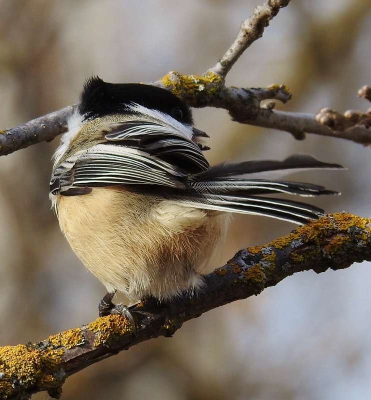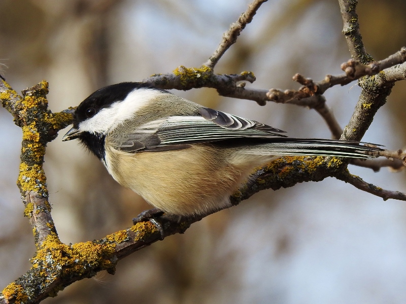 My first stop once I reached the park was the Prairie Winds trail. I arrived with a couple of handfuls of sunflower seeds in case any Chickadees were around. During the summer, these adorable little birds are too busy catching insects to feed to their chicks and although we might hear them, we seldom see them. Now that the temperature has lowered enough for the insects to die off (or go into hiding) the Chickadees have returned to asking for sunflower seeds. They actually follow people, especially once they find out there are sunflower seeds available.
