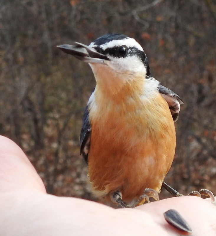 As I reached the end of the trail later, there was a group of 2 people who were introducing a 3rd to the friendly Chickadees who hang out at the beginning/end of the trail. There are always a lot of birds – both Chickadees & Nuthatches that just wait for a food hand out at this spot. This is the same spot that my friend Judy brought me a few years ago that got me started on my drives out here. The woman was so excited to have the birds landing on her hand. At this particular location there are a lot of birds and she would have 2 or 3 of them at a time, with hardly a second in between the birds coming and going. Her friends were taking photos of her and the birds and I am very sure that she will be back again soon.