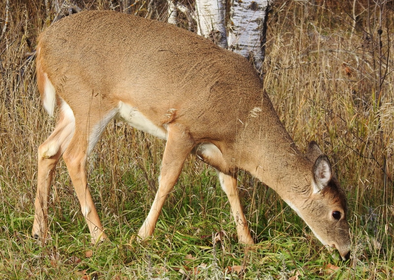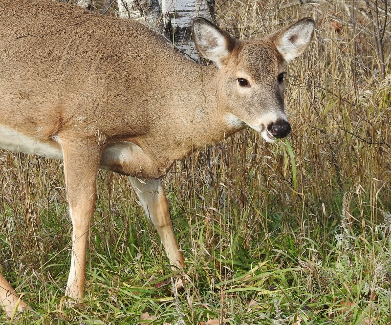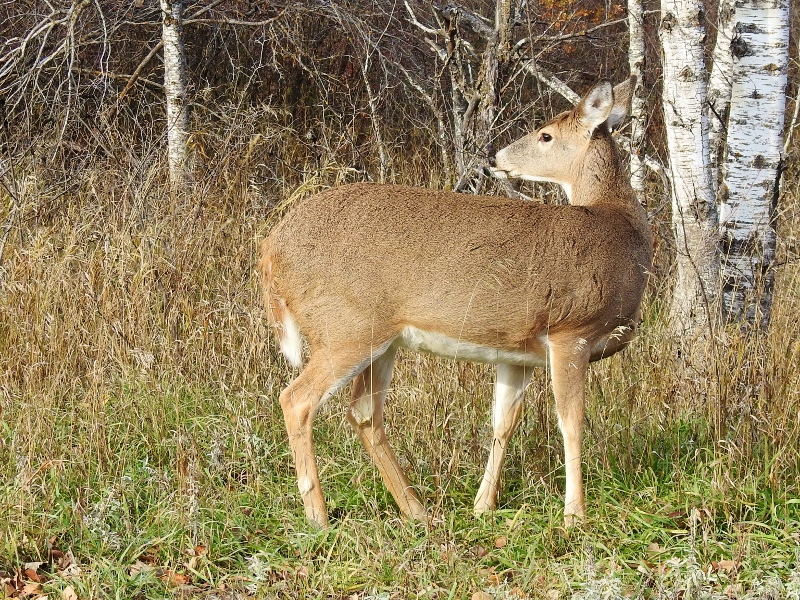 I wasn’t far from the Chickadee Train when I saw a White-tailed doe eating at the side of the road. I slowed down, put my window down and hoped for a photo. She wasn’t disturbed a bit and stayed for a few photos.