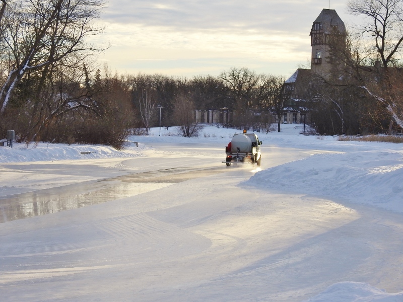 After walking through the English Gardens, I decided that maybe I should eat at the Park Cafe before going any further. I stopped for a couple of seconds to get a photo of the ice on the duck pond getting a morning refresh for the ice skaters.