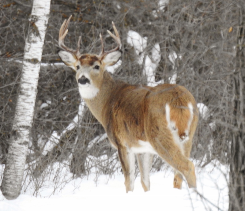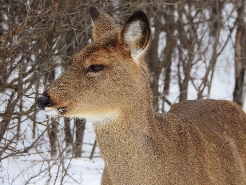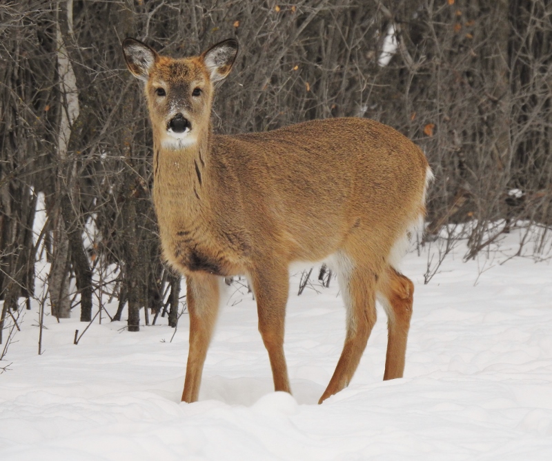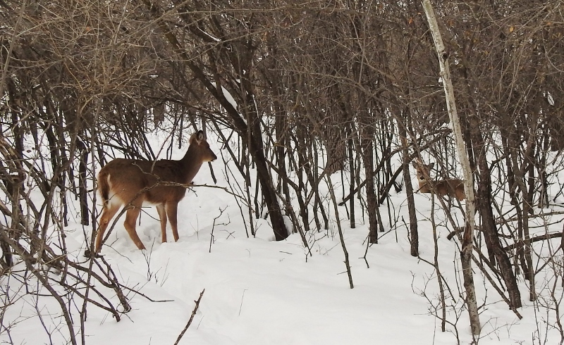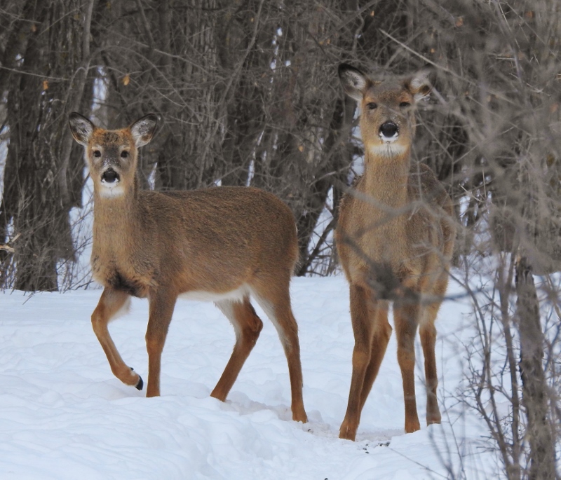As I rounded a curve in the tracks, I could see 2 more Deer – I zoomed in and snapped a photo since I expected them to move off the path. But they didn’t.