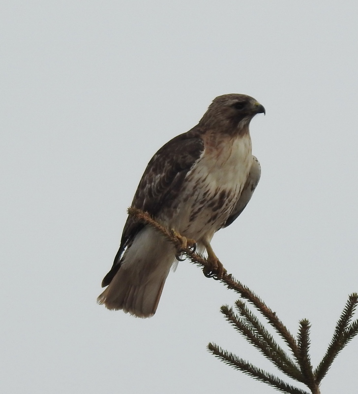 When back on the road, I saw a hawk at the top of a tree and stopped for one quick photo. For hawks, I generally just zoom a bit to snap a photo and if he stays a few more seconds, I can zoom in more. He only stayed for the one, but I probably wouldn’t have got the shot at all if I had tried to zoom in more than I did. So, this photo is cropped a fair amount.