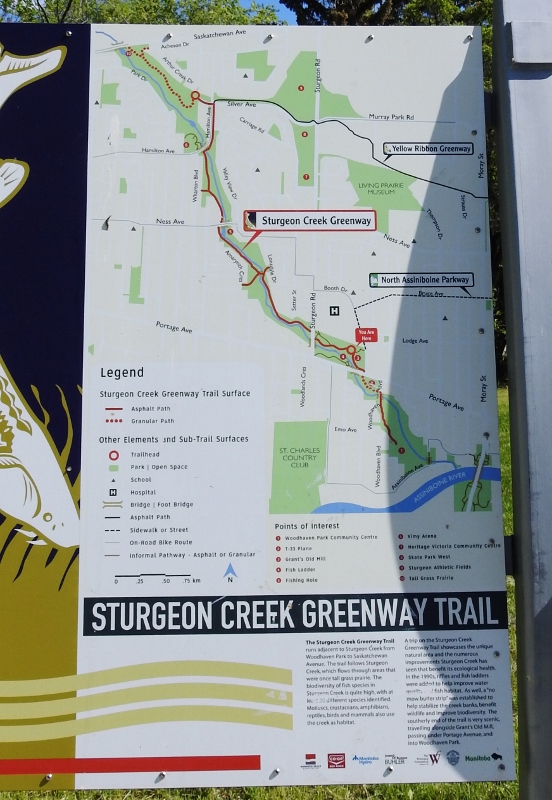 Sturgeon Creek flows south into the Assiniboine River – not too far from where I live. Much of the the creek in Winnipeg has a walking path beside it. That is where I decided to walk yesterday. I drove to the parking lot that is just south of Portage Avenue, which is close to the Assiniboine River, where the creek ends.