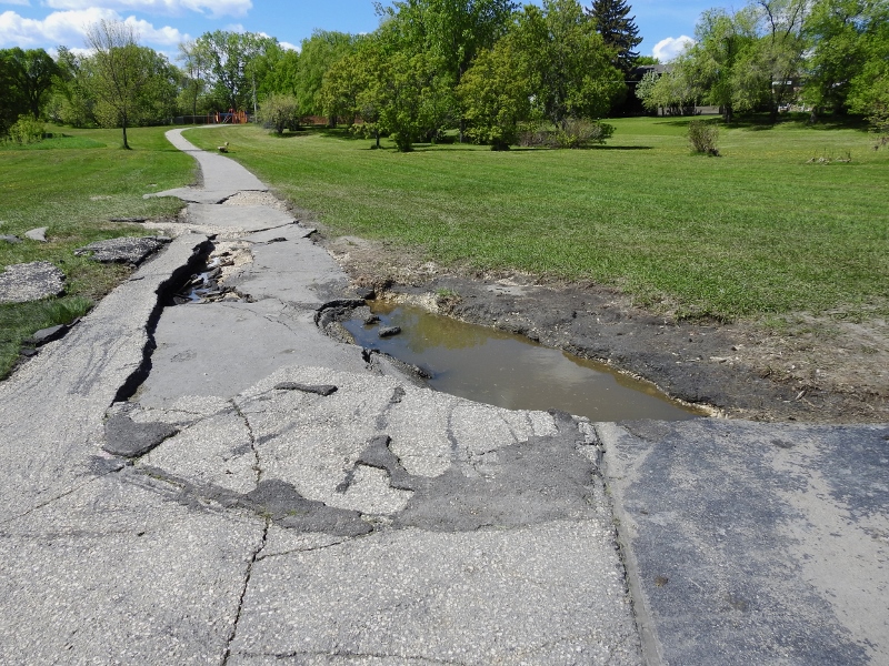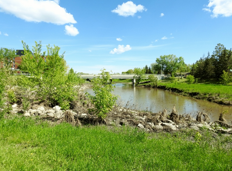 This creek (along with every other creek, stream & river in Winnipeg) flooded much of the land around it this spring. I have a couple of photos showing how high it was in spots.