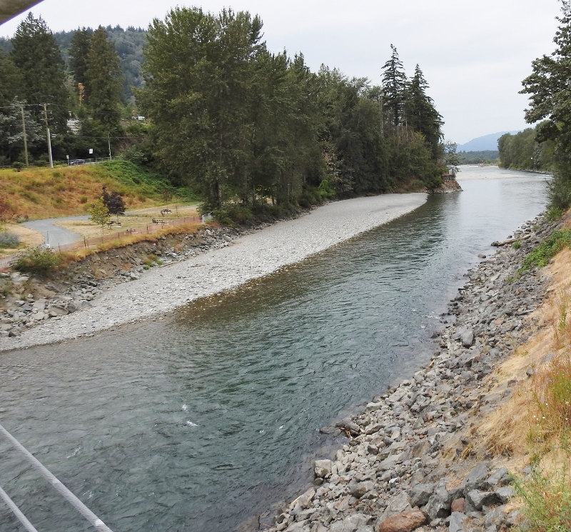 Then I crossed under the bridge and took this photo of some houses up on top of the mountain (or is it a hill if there are trees right to the top?)
