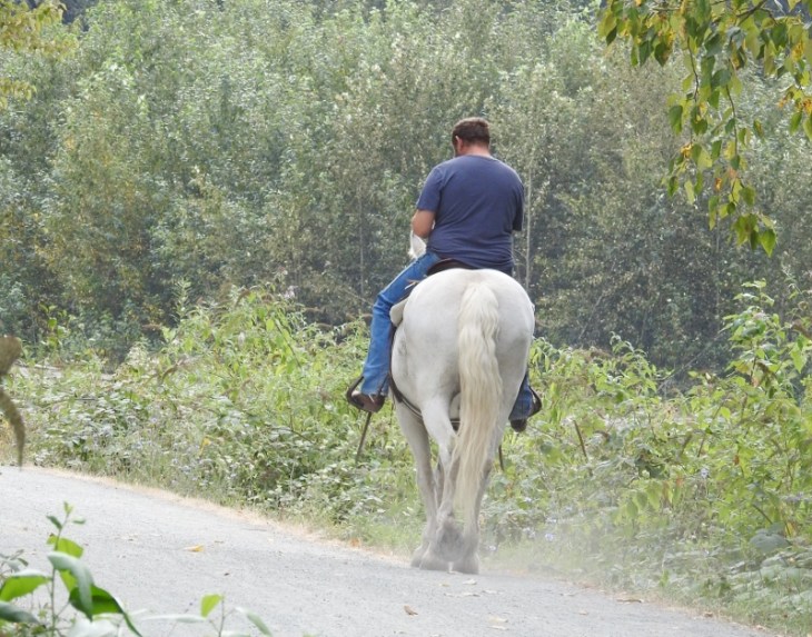 I saw just the guy riding his white horse again today. He seemed to be riding & texting (is that legal?) Also – I passed a trail of horse droppings. Dog owners are required to pick up after their dogs, are horse owners exempt? I didn’t see his horse do it, but this was the only horse I saw and it wasn’t on the trail when I first walked on it, but was there on my way back to my car.